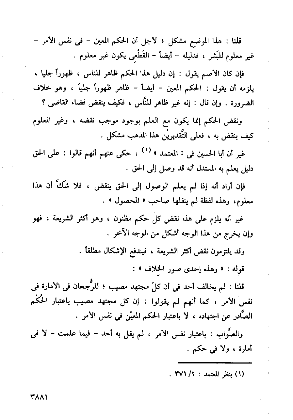 فإن كان الأصم يقول: إن دليل هذا الحكم ظاهر للناس، ظهورًا جليا، يلزم أن يقول: الحكم المعين - أيضًا - ظاهر ظهورًا جليًا، وهو خلاف الضرورة. وإن قال: إنه غير ظاهر للناس، فكيف ينقض قضاء القاضي؟