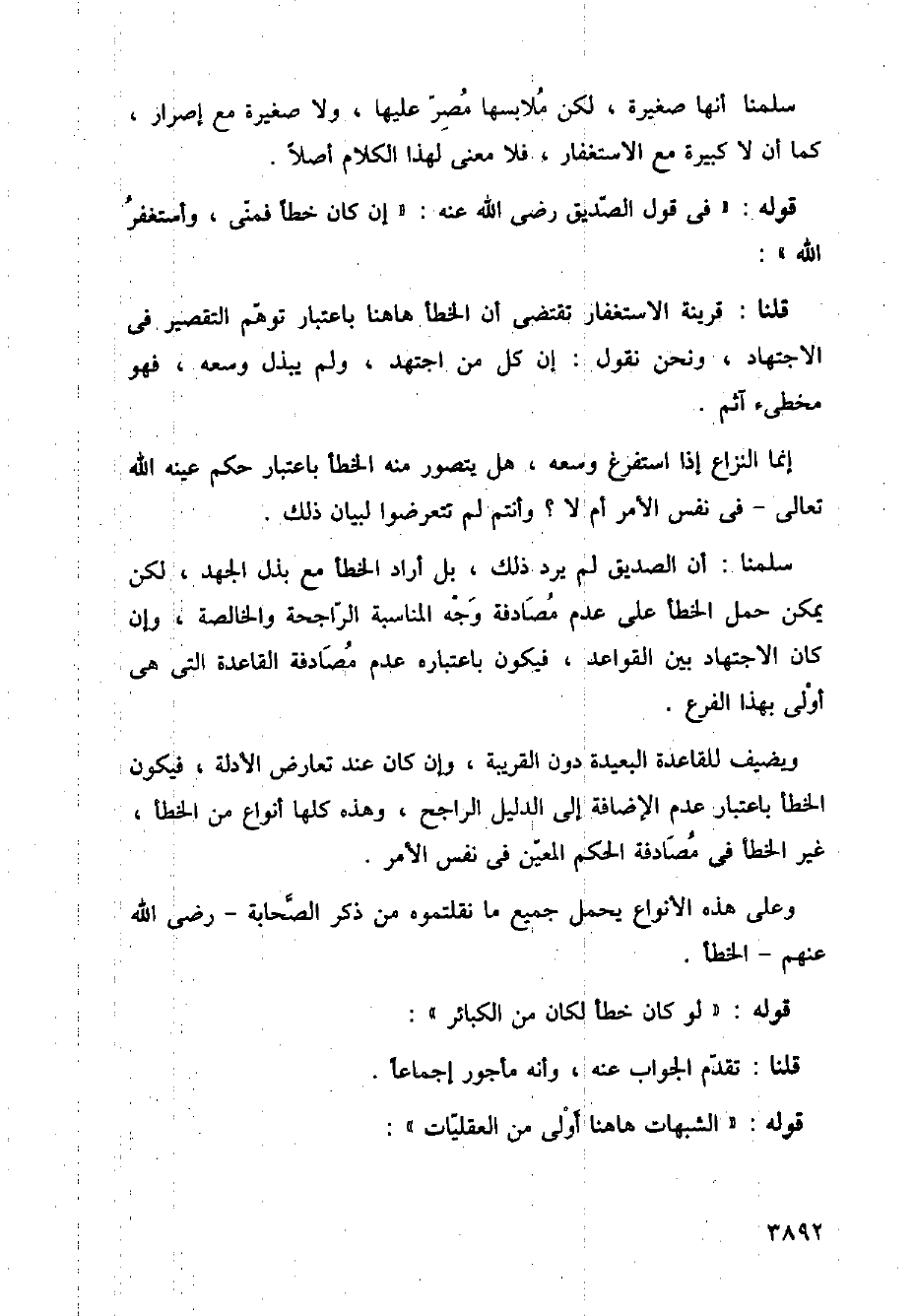 قلنا: قرينة الاستغفار تقتضي أن الخطأ هاهنا باعتبار توهم التقصير في الاجتهاد، ونحن نقول: إن كل من اجتهد، ولم يبذل وسعه، فهو مخطئ آثم.
