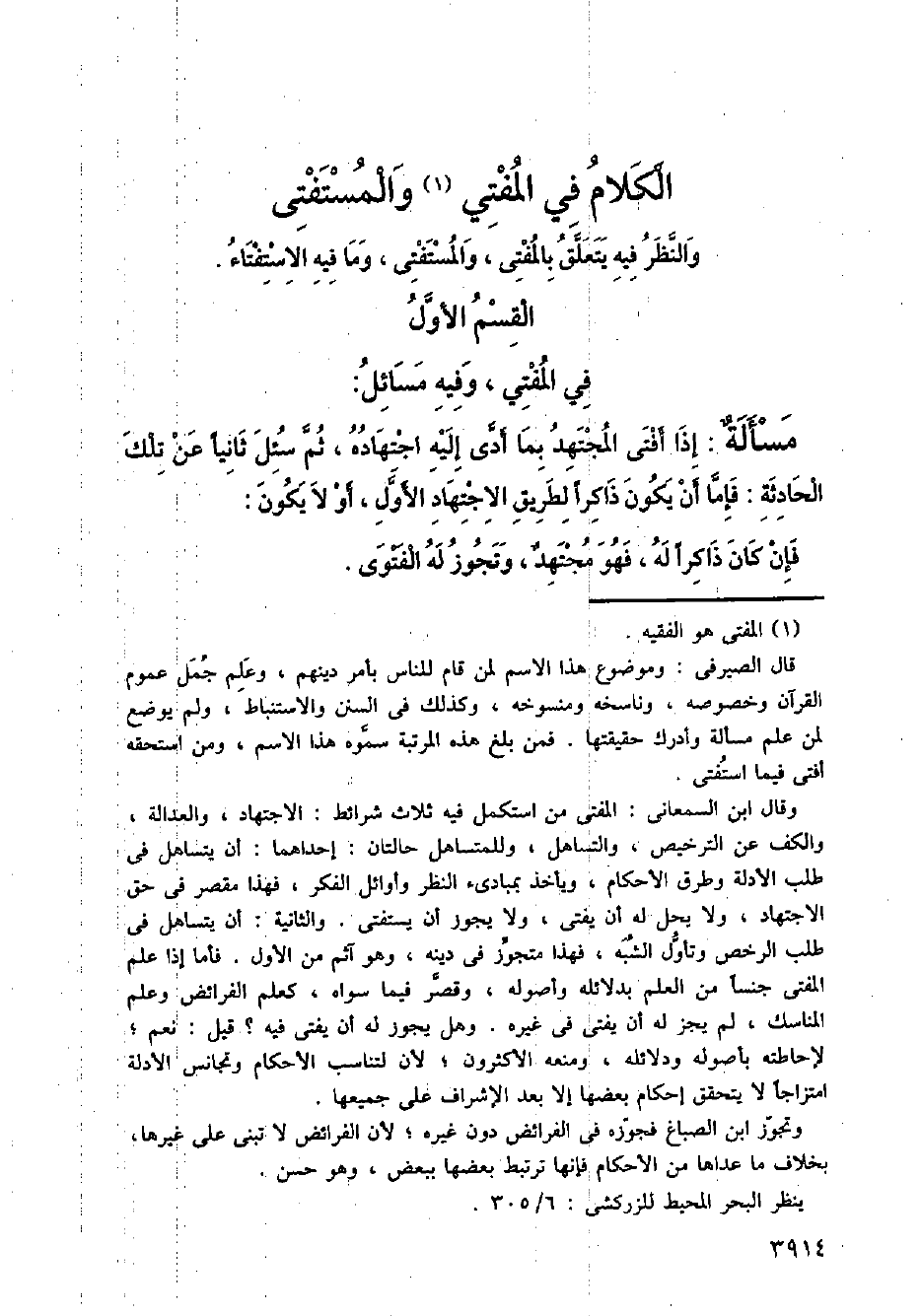 والنظرية فيه يتعلق بالمفتي، والمستفتي، وما فيه الاستفتاء.