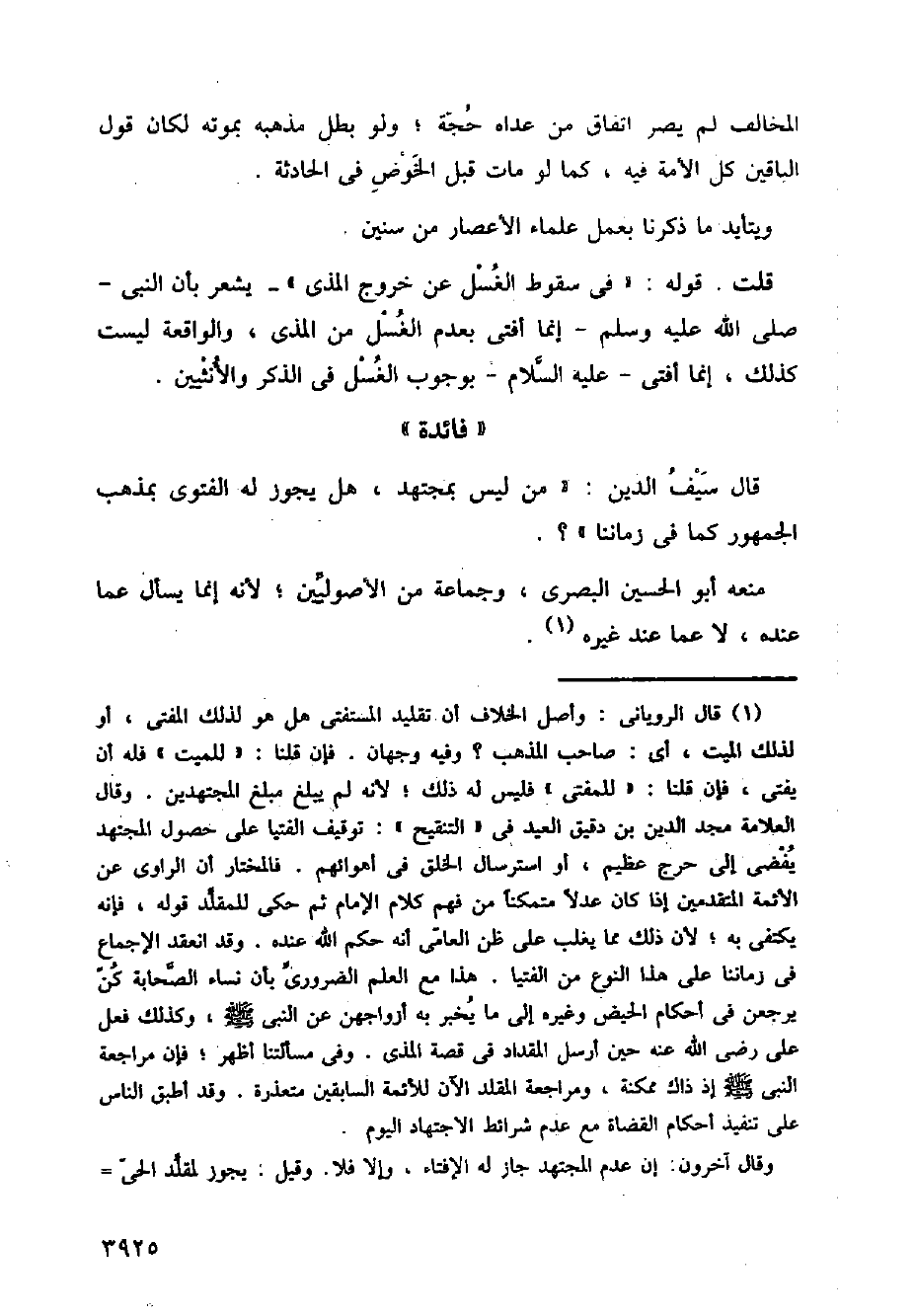 قال سيف الدين: (من ليس بمجتهد، هل يجوز له الفتوى بمذهب الجمهور كما في زماننا)؟.