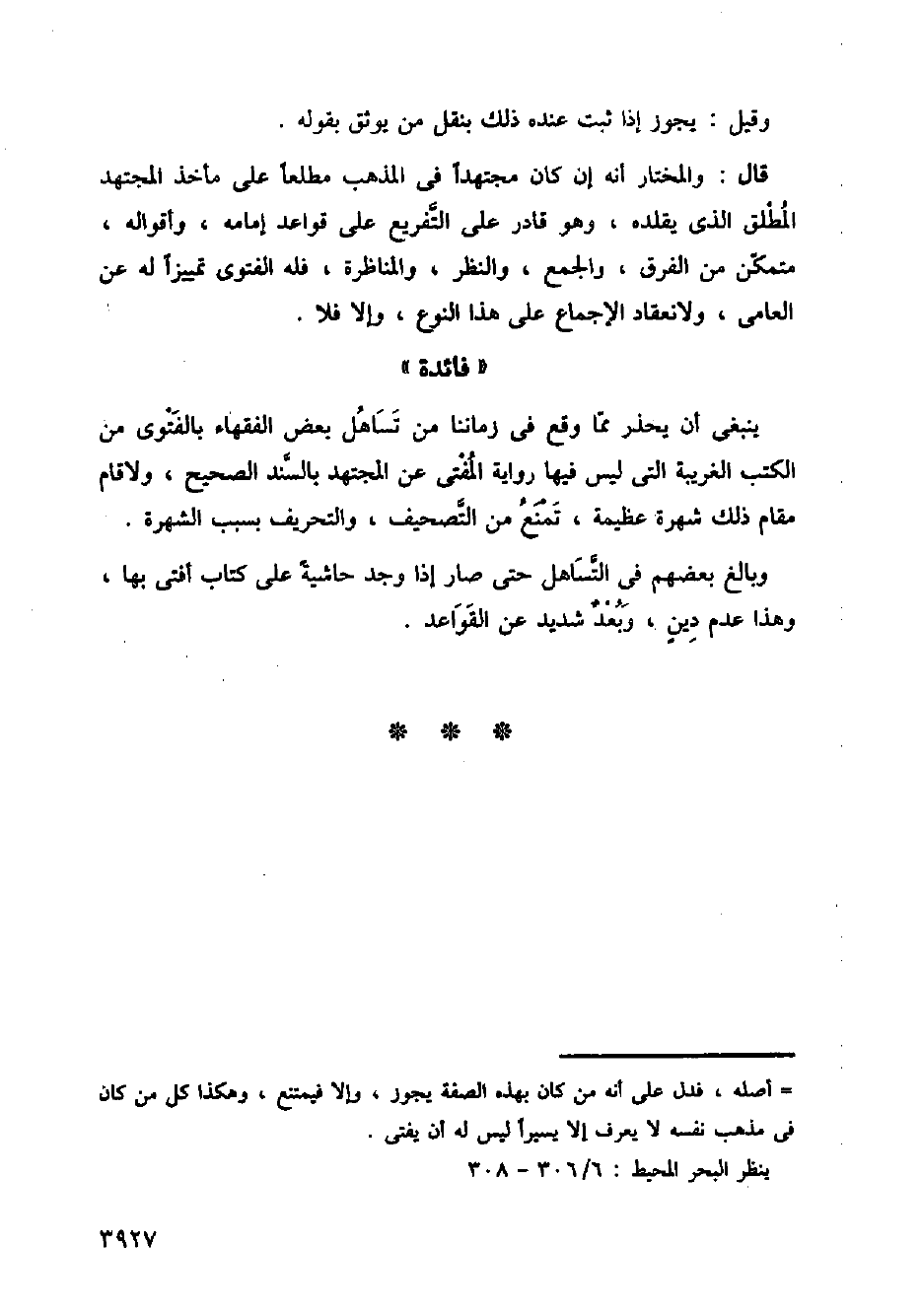 ينبغي أن يحذر مما وقع في زماننا من تساهل بعض الفقهاء بالفتوى من الكتب الغريبة التي ليس فيها رواية المفتى عن المجتهد بالسند الصحيح، ولأقام مقام ذلك شهرة عظيمة، تمنع من التصحيف، والتحريف بسبب الشهرة.