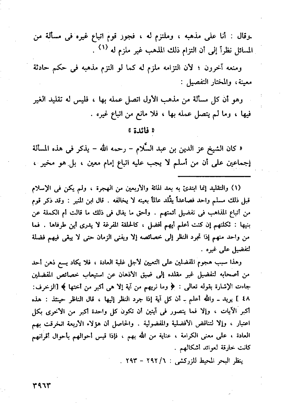 (كان الشيخ عز الدين بن عبد السلام -رحمة الله -يذكر في هذه المسألة إجماعين على أن من أسلم لا يجب عليه اتباع إمام معين، بل هو مخير،