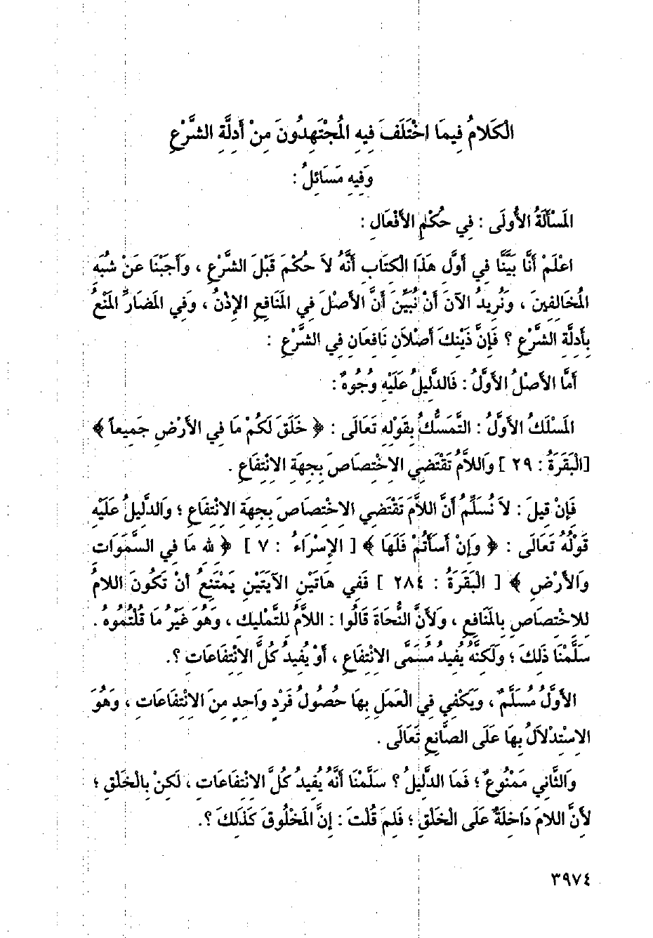 المسك الأول: التمسك بقوله تعالى: {خلق لكم ما في الأرض جميعًا} [البقرة: 29] واللام تقتضي الاختصاص بجهة الانتفاع.