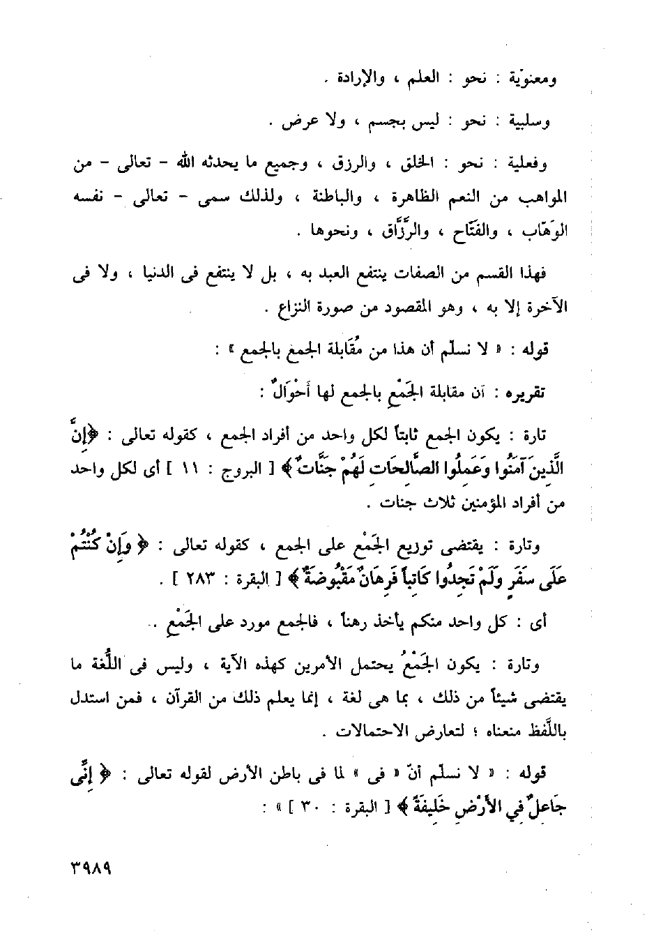 وتارة: يكون الجمع يحتمل الأمرين كهذه الآية، وليس في اللغة ما يقتضى شيئًا من ذلك، بما هي لغة، إنما يعلم ذلك من القرآن، فمن استدل باللفظ معناه؛ لتعارض الاحتمالات.