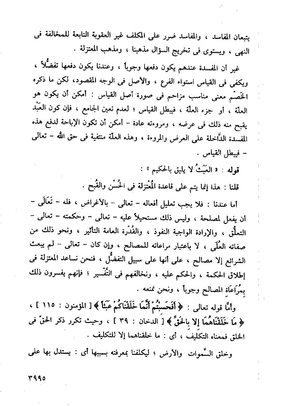 وأما قوله تعالى: {أفحسبتم أنما خلقناكم عبثًا} [المؤمنون: 115]، {ما خلقناهما إلا بالحق} [الدخان: 39]، وحيث تكرر ذكر الحق في الخلق فمعناه التكليف، أي: ما خلقناهما إلا للتكليف.
