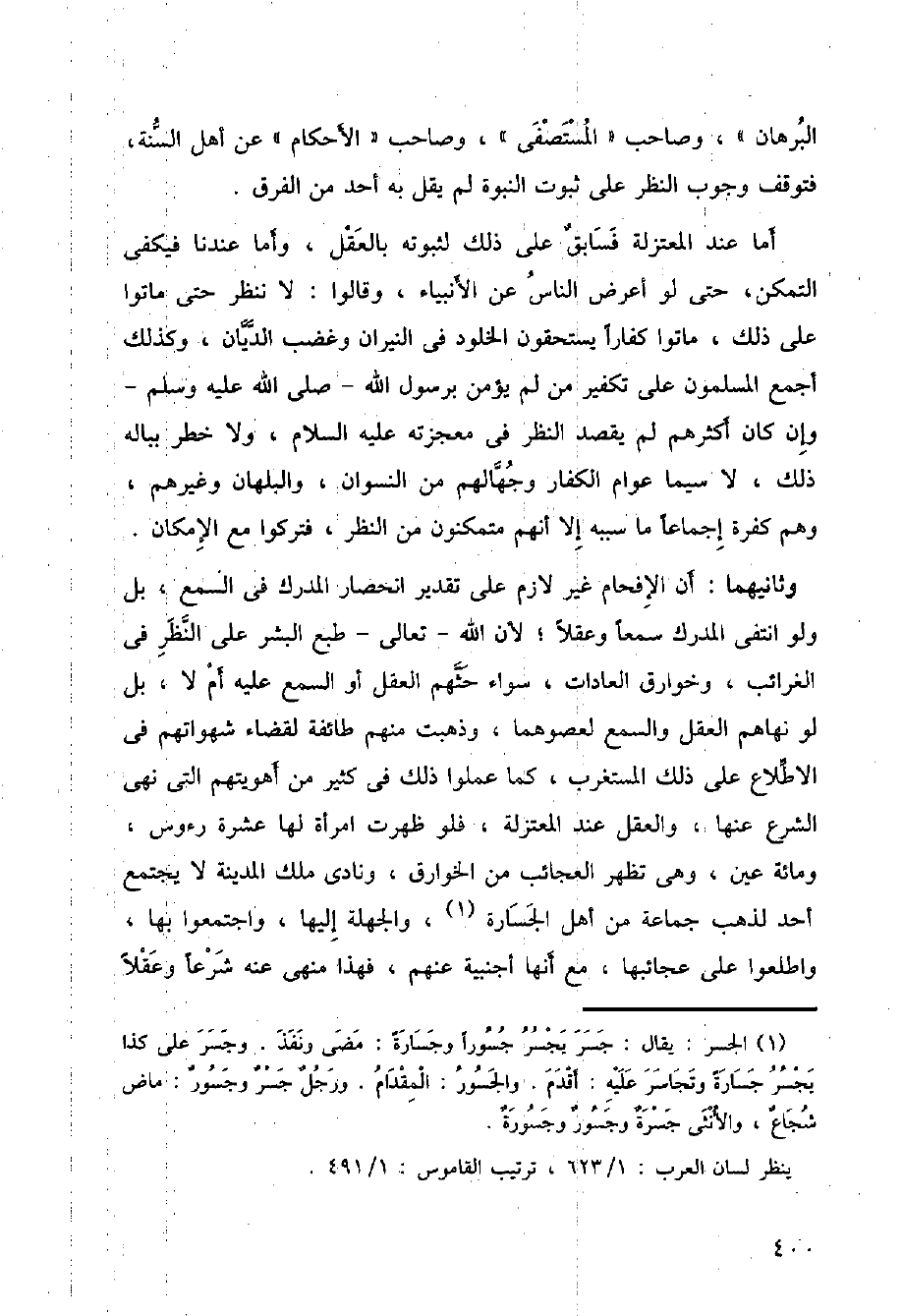 وثانيهما: أن الإفحام غير لازم على تقدير انحصار المدرك في السمع، بل ولو انتقى المدرك سمعا وعقلا، لأن الله تعالى طبع البشر على النظر في الغرائب، وخوارق العادات، سواء حثهم العقل او السمع عليه أم لا، بل لونهاهم العقل والسمع لعصوهما، وذهبت منهم طائفة لقضاء شهواتهم في الاطلاع على ذلك المستغرب، كما عملوا ذلك في كثير من أهويتهم التي نهى الشرع عنها، والعقل عند المعتزلة، فلو ظهرت امرأة لها عشرة رؤوس، ومائة عين، وهي تظهر العجائب من الخوارق، ونادى ملك المدينة لا يجتمع أحد لذهب جماعة من أهل الجسارة والجهلة إليها، واجتمعوا بها، واطلعوا عى عجائبها، مع أنها أجنبية عنهم، فهذا منهي عنه شرعا وعقلا