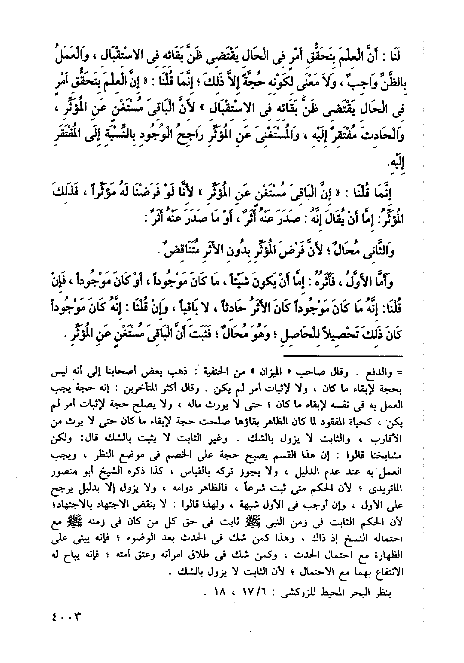 لنا: أن العلم بتحقق أمر في الحال يقتضى ظن بقائه في الاستقبال، والعمل بالظن واجب، ولا معنى لكونه حجة إلا ذلك؛ إنما قلنا: (إن العلم بتحقق أمر في الحال يقتضى ظن بقائه في الاستقبال) لأن الباقي مستغن عن المؤثر، والحادث مفتقر إليه، والمستغنى عن المؤثر راجح الوجود بالنسبة إلى المفتقر إليه.