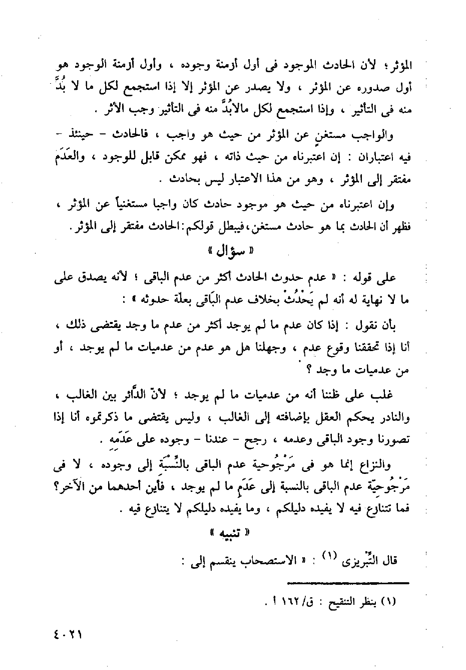 وإن اعتبرناه من حيث هو موجود حادث كان واجبًا مستغنيًا عن المؤثر، فظهر أن الحدث بما هو حادث مستغن، فيبطل قولكم: الحاث مفتقر إلى المؤثر.