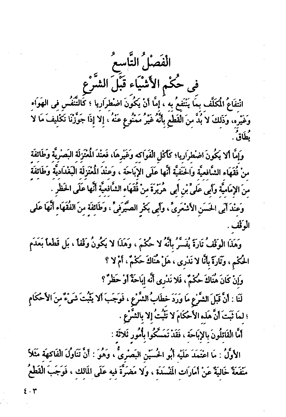 أن قبل الشرع ما ورد خطاب الشرع فوجب أن لا يثبت شيء من الأحكام لما ثبت أن هذه الأحكام لا تثبت إلا بالشرع