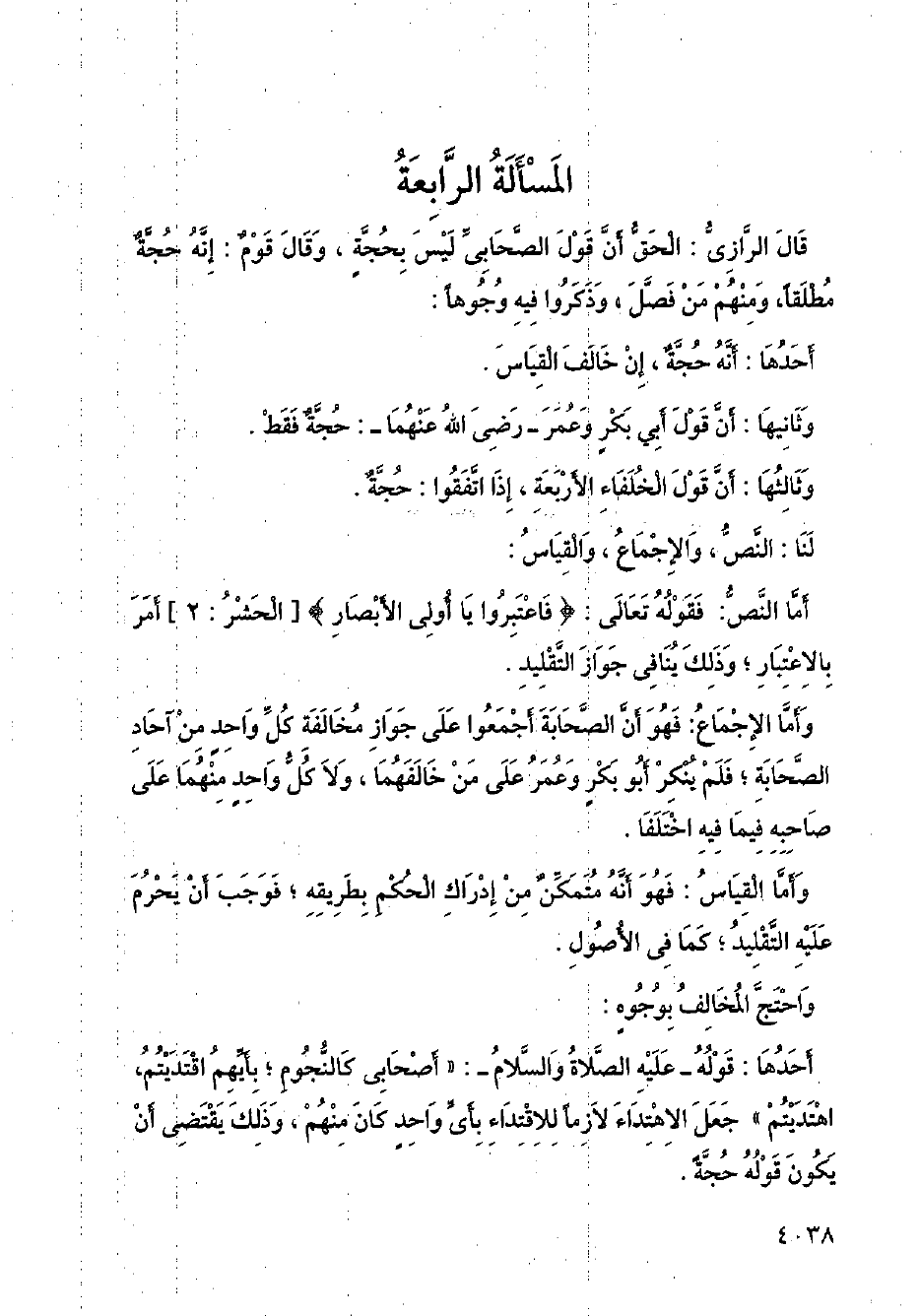 أحدها: قوله -عليه الصلاة والسلام -: (أصحابي كالنجوم؛ بأيهم اقتديتم، اهتديتم) جعل الاهتداء لازمًا للاقتداء بأي واحد كان منهم، وذلك يقتضي أن يكون قوله حجة.