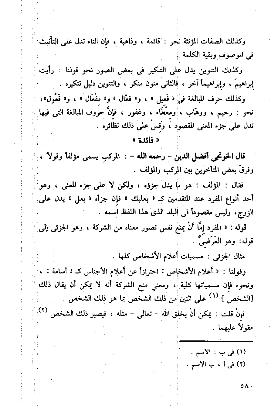 قال الخونجى أفضل الدين -رحمه الله-: المركب يسمى مؤلفا وقولا، وفرق بعض المتأخرين بين المركب والمؤلف.