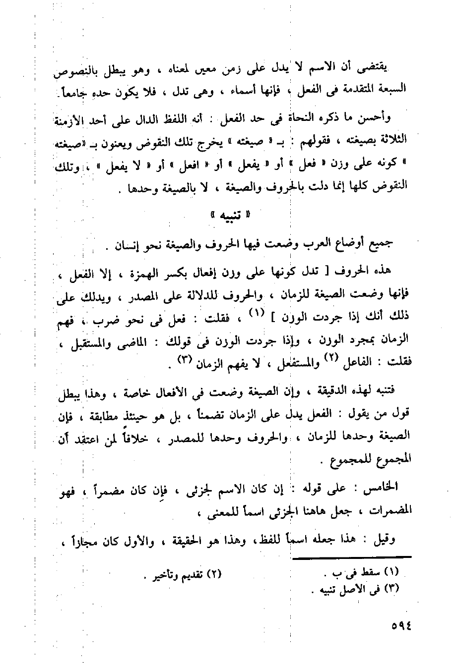 وأحسن ما ذكره النحاة في حد الفعل: أنه اللفظ الدال على أحد الأزمنة الثلاثة بصيغته، فقولهم: بـ (صيغته) يخرج تلك النقوض ويعنون بـ (صيغته) كونه على وزن (فعل) أو (يفعل) أو (افعل) أو (لا يفعل)، وتلك النقوض كلها إنما دلت بالحروف والصيغة، لا بالصيغة وحدها.