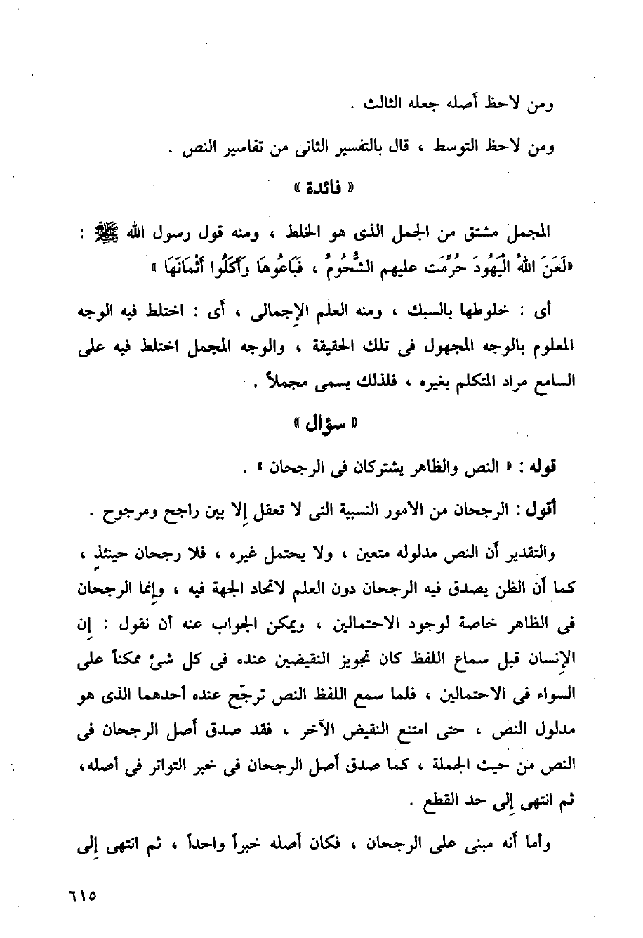المجمل مشتق من الجمل الذي هو الخلط، ومنه قول رسول الله - صلى الله عليه وسلم -: (لعن الله اليهود حرمت عليهم الشحوم، فباعوها وأكلوا أثمانها).