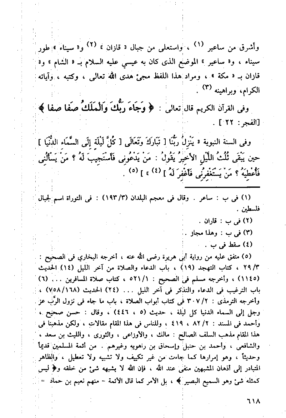وأشرق من ساعير، واستعلى من جبال (قازان) و (سيناء) طور سيناء، و (ساعير) الموضع الذي كان به عيسى عليه السلام بـ (الشام) و (قازان) بـ (مكة)، ومراد هذا اللفظ مجيء هدي الله تعالى، وكتبه، وآياته الكرام، وبراهينه.