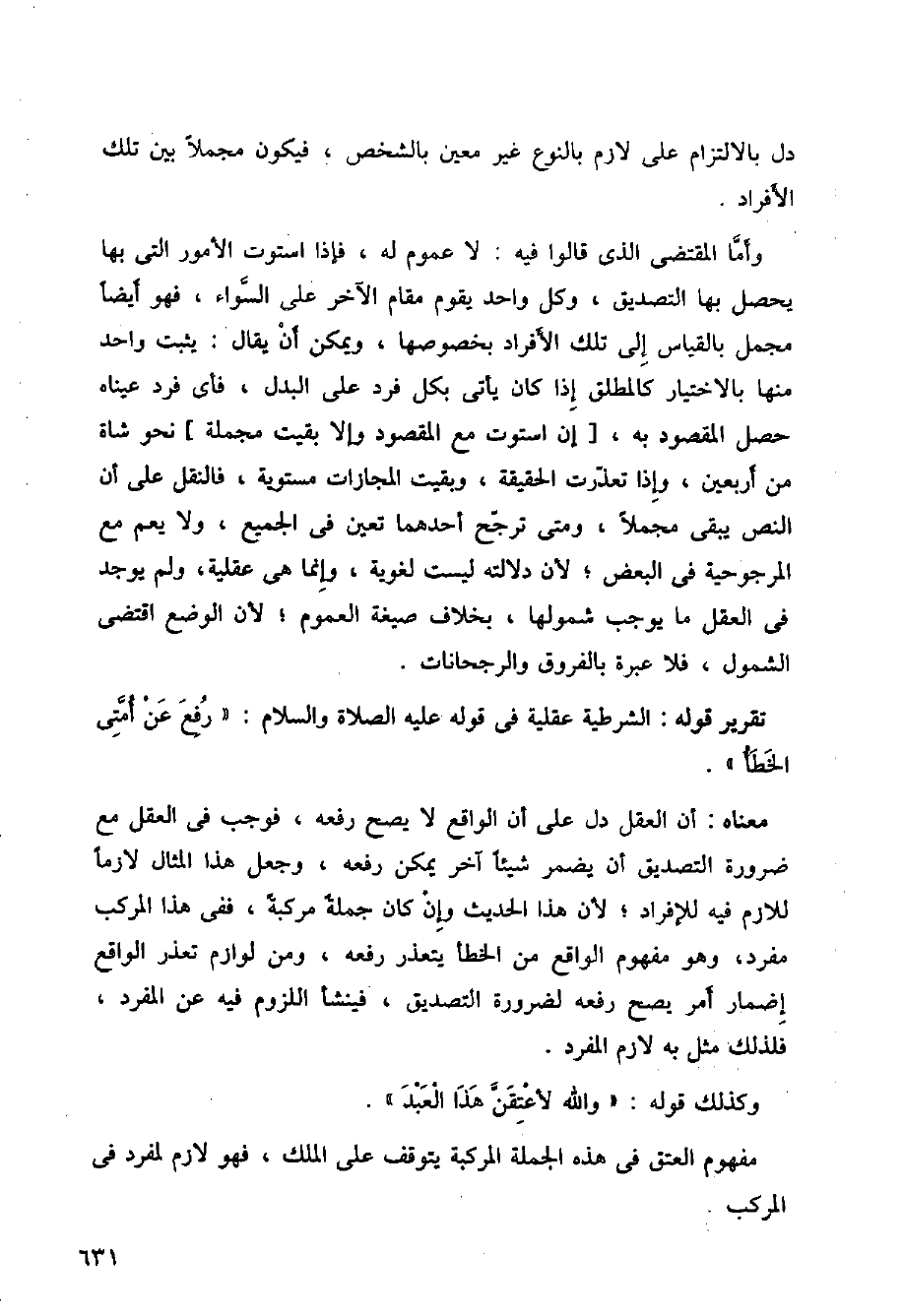 تقرير قوله: الشرطية عقلية في قوله عليه الصلاة والسلام: (رفع عن أمتي الخطأ).