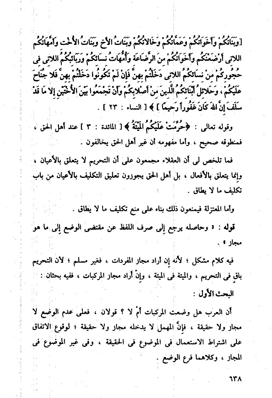 وقوله تعالى: {حرمت عليكم الميتة} [المائدة: 3] عند أهل الحق، فمنطوقه صحيح، وأما مفهومه أن غير أهل الحق يخالفون.