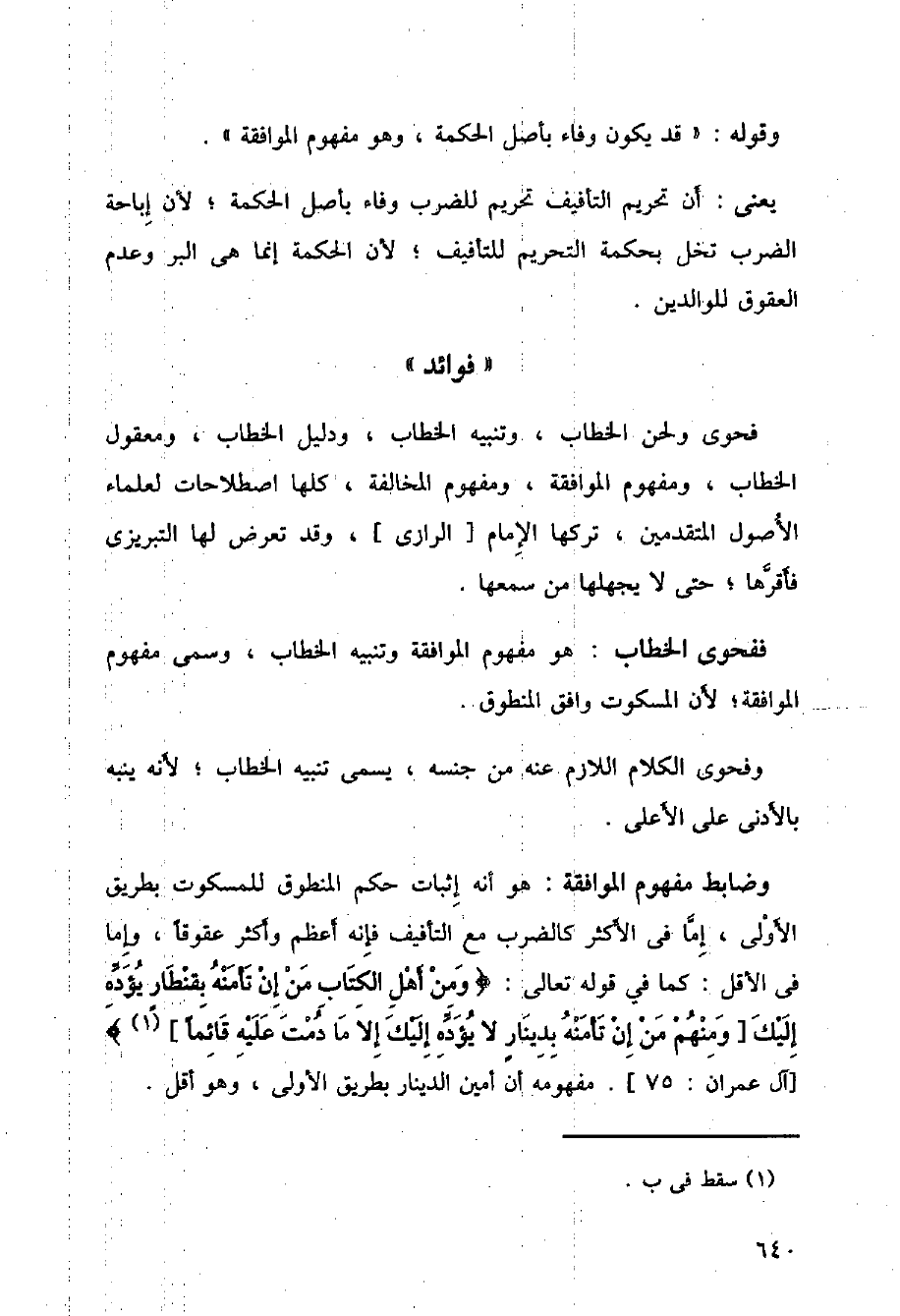 فحوى ولحن الخطاب، وتنبيه الخطاب، ودليل الخطاب، ومعقول الخطاب، ومفهوم الموافقة، ومفهوم المخالفة، كلها اصطلاحات لعلماء الأصول المتقدمين، تركها الإمام [الرازي]، وقد تعرض لها التبريزي فأقرها؛ حتى لا يجهلها من سمعها.
