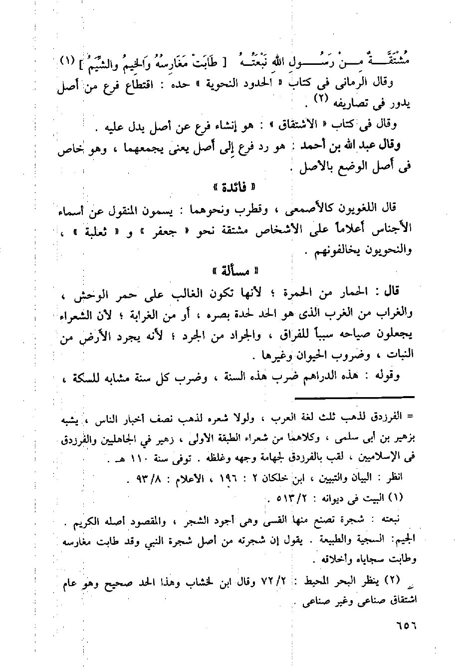 قال اللغويين كالأصمعي، وقطرب ونحوهما: يسمون المنقول عن أسماء الأجناس أعلاما على الأشخاص مشتقة نحو (جعفر) و (ثعلبة)، والنحويون يخالفونهم.