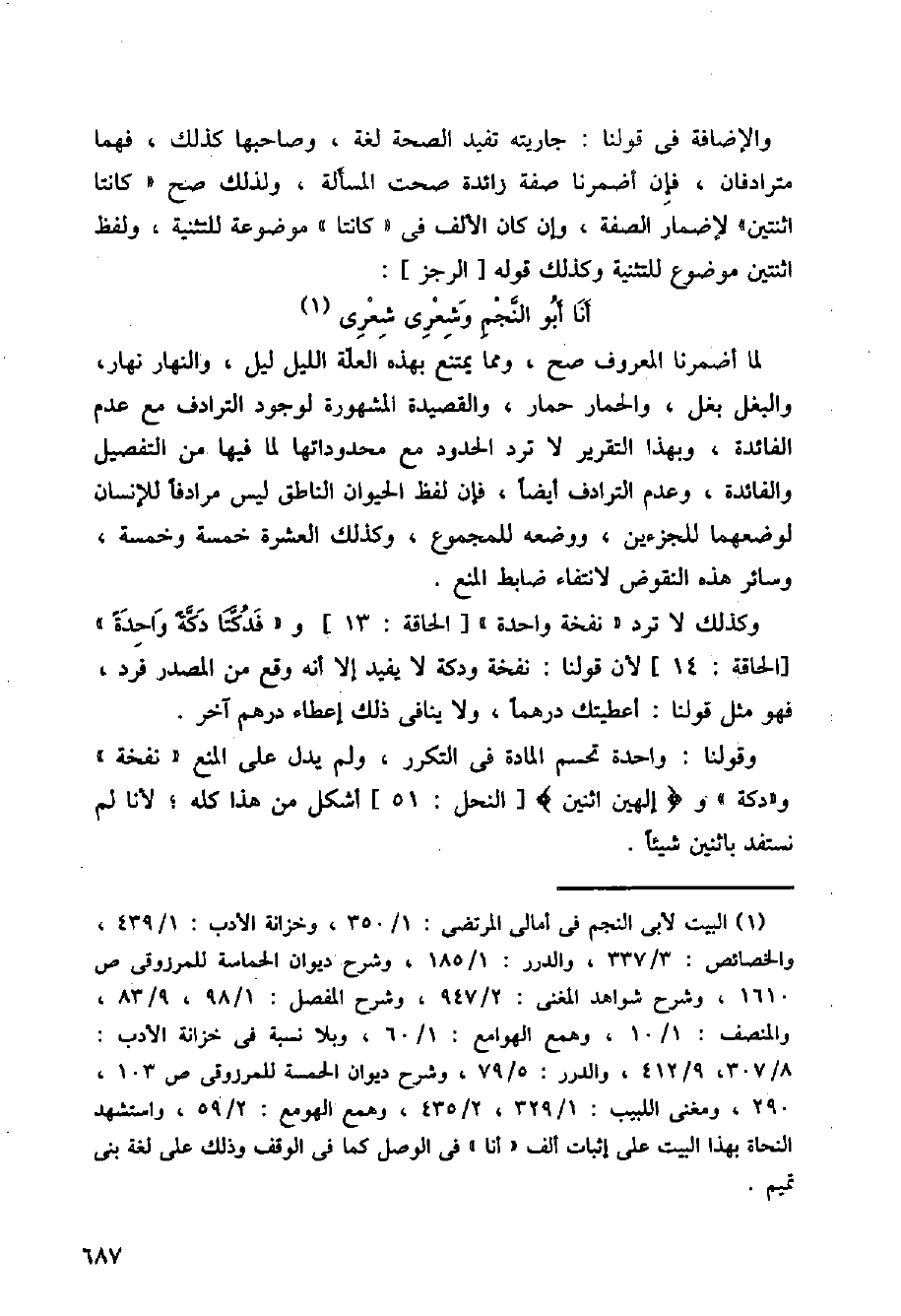 والإضافة في قولنا: جاريته تفيد الصحة لغة، وصاحبها كذلك، فهما مترادفان، فإن أضمرنا صفة زائدة صحت المسألة، ولذلك صح (كانتا اثنتين) لإضمار الصفة، وإن كان الألف في (كانتا) موضوعة للتثنية، ولفظ اثنتين موضوع للتثنية وكذلك قوله [الرجز]: