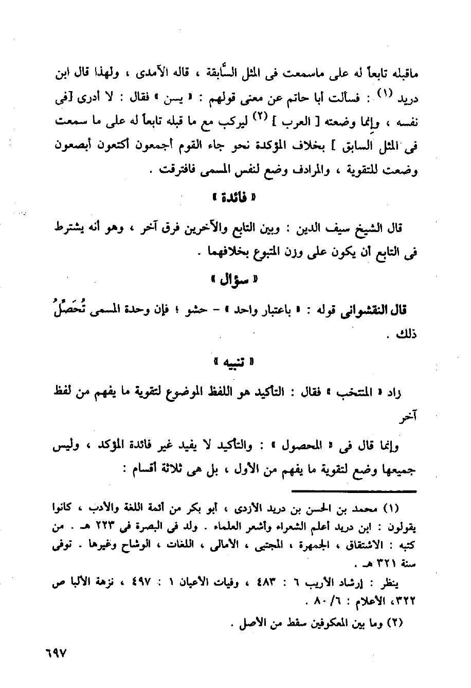 زاد "المنتخب" فقال: التأكيد هو اللفظ الموضوع لتقوية ما يفهم من لفظ آخر