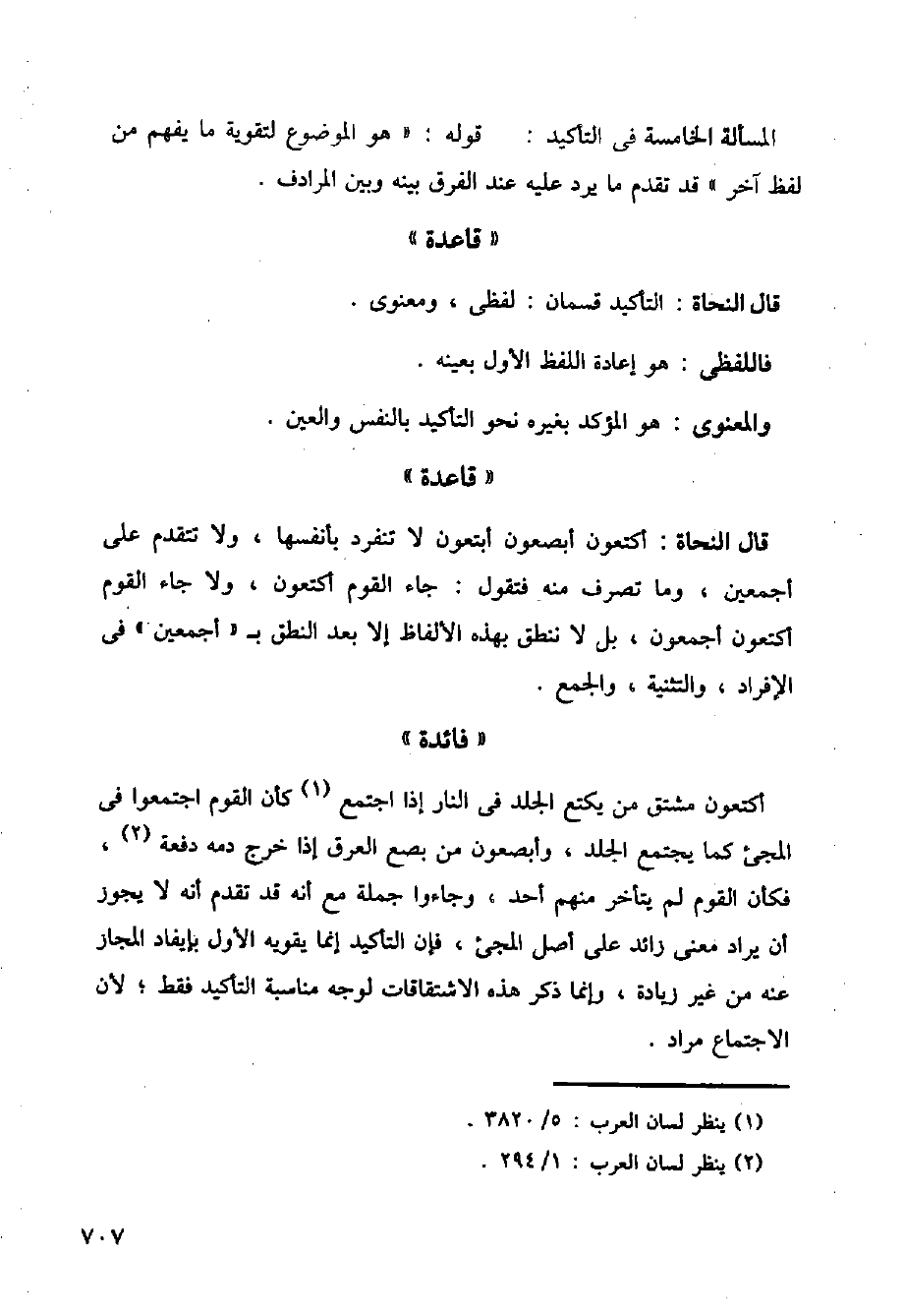 قال النحاة: التأكيد قسمان: لفظي، ومعنوي.