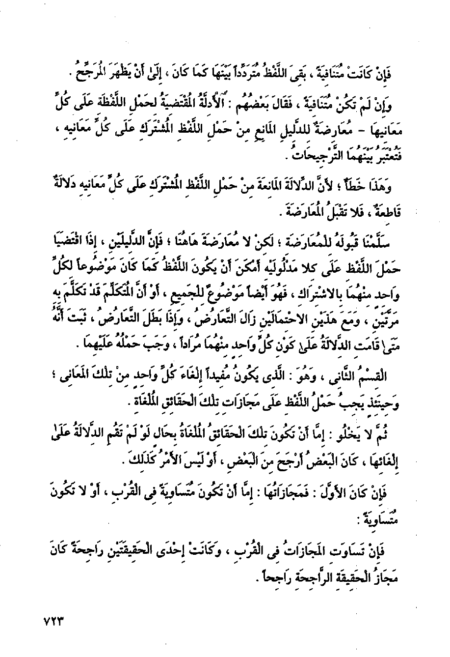 ثم لا يخلو: إما أن نكون تلك الحقائق الملغاة بحال لو لم تقم الدلالة على إلغائها، كان البعض أرجح من البعض، أو ليس الأمر كذلك.