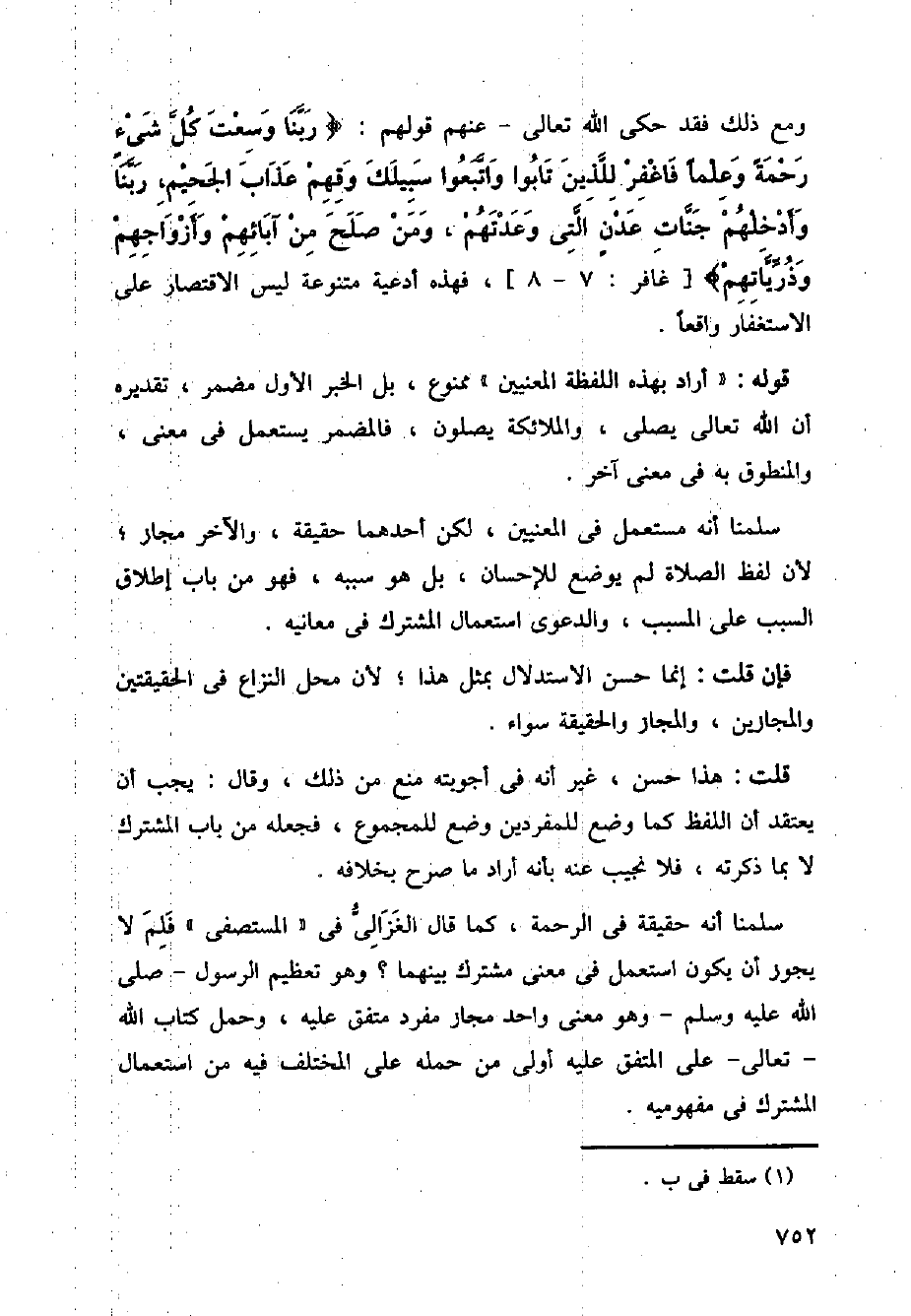 قوله: (أراد بهذه اللفظة المعنيين) ممنوع، بل الخبر الأول مضمر، تقديره أن الله تعالى يصلى، والملائكة يصلون، فالمضمر يستعمل في معنى، والمنطوق به في معنى آخر.