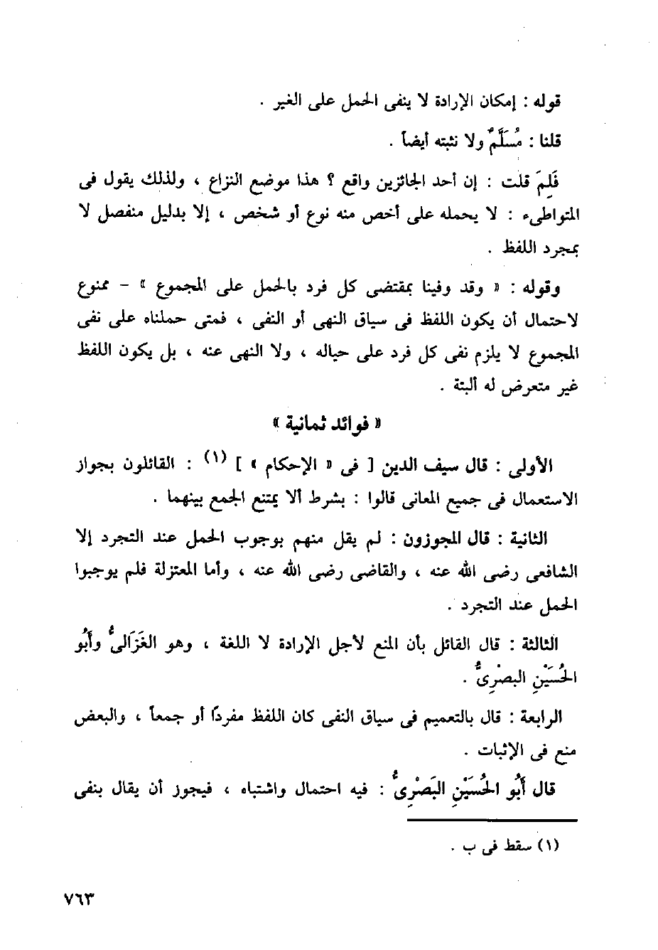قال أبو الحسين البصري: فيه احتمال واشتباه، فيجوز أن يقال بنفي