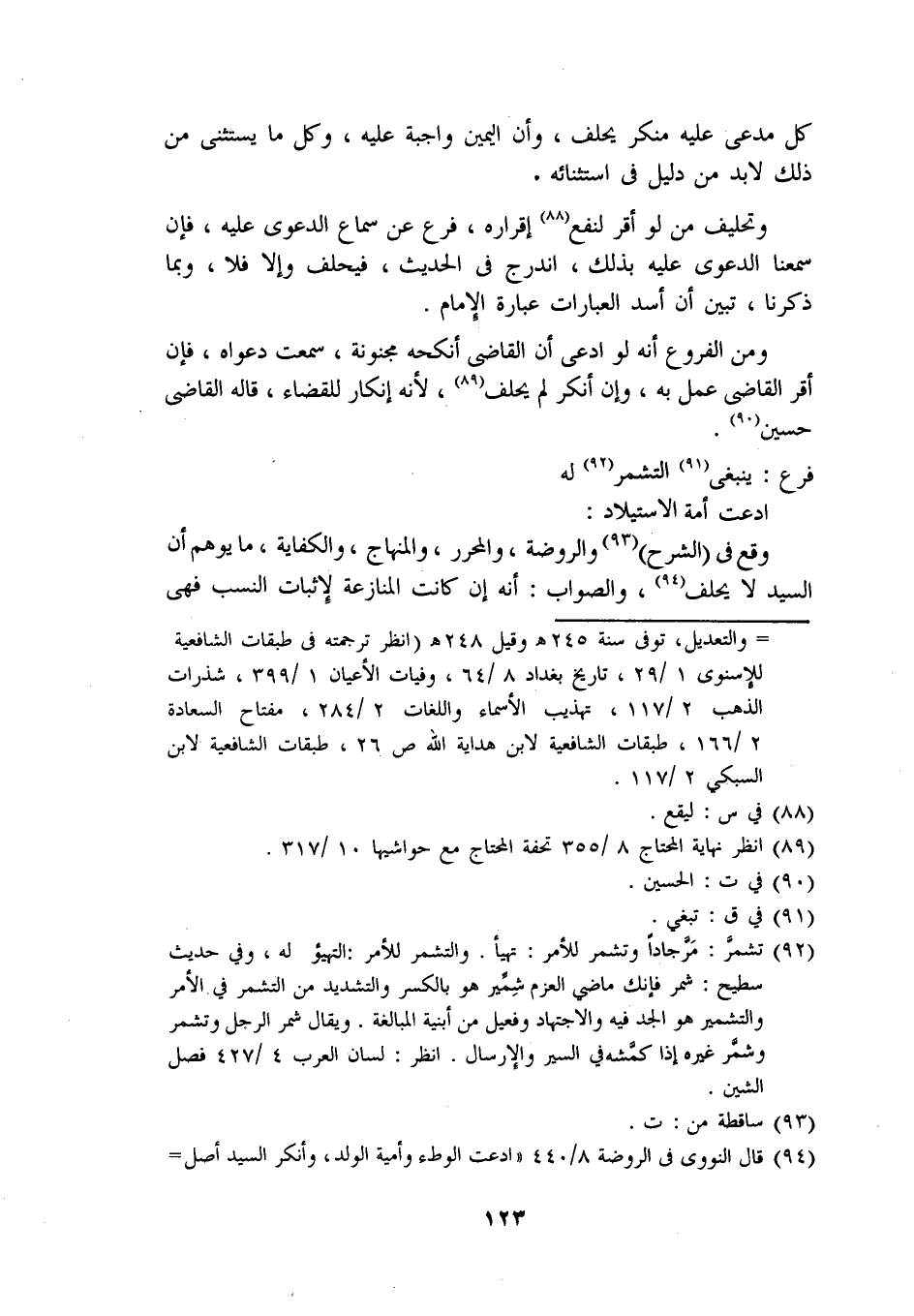 وقع في (الشرح) والروضة، والمحرر، والمنهاج، والكفاية، ما يوهم أن السيد لا يحلف، والصواب: أنه إن كانت المنازعة لإثبات النسب فهي
