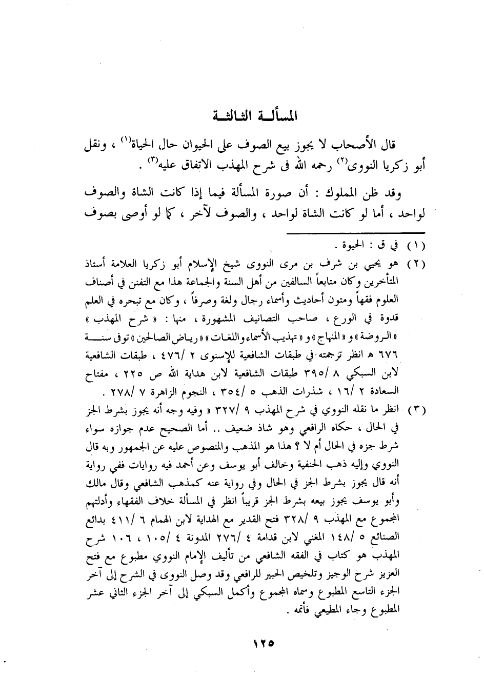 قال الأصحاب لا يجوز بيع الصوف علي الحيوان حال الحياة، ونقل أبو زكريا النووي رحمه الله في شرح المهذب الاتفاق عليه.