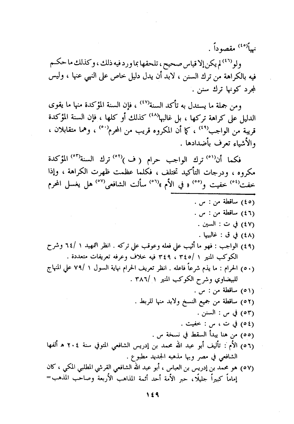 فكما أن ترك الواجب حرام (ف) ترك السنة المؤكدة مكروه، ودرجات التأكيد تختلف، فكلما عظمت ظهرت الكراهة، وإذا خفت خفيت و ((في الأم)) سألت الشافعي هل يغسل المحرم