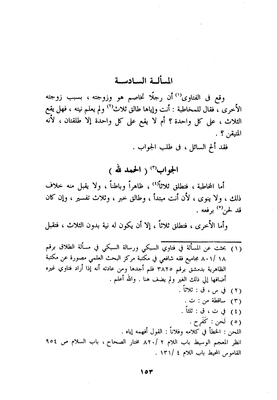 المسألة السادسة