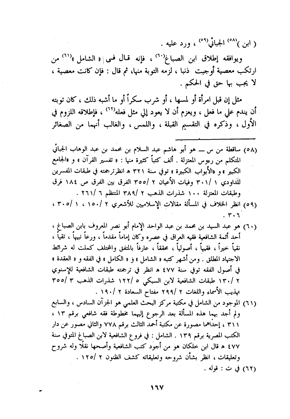 ويواقفه إطلاق ابن الصباغ، فإنه قال في ((الشامل)) من ارتكب معصية أوجبت ذنبا، لزمه التوبة منها، ثم قال: فإن كانت معصية، لا يجب بها حق في الحكم.