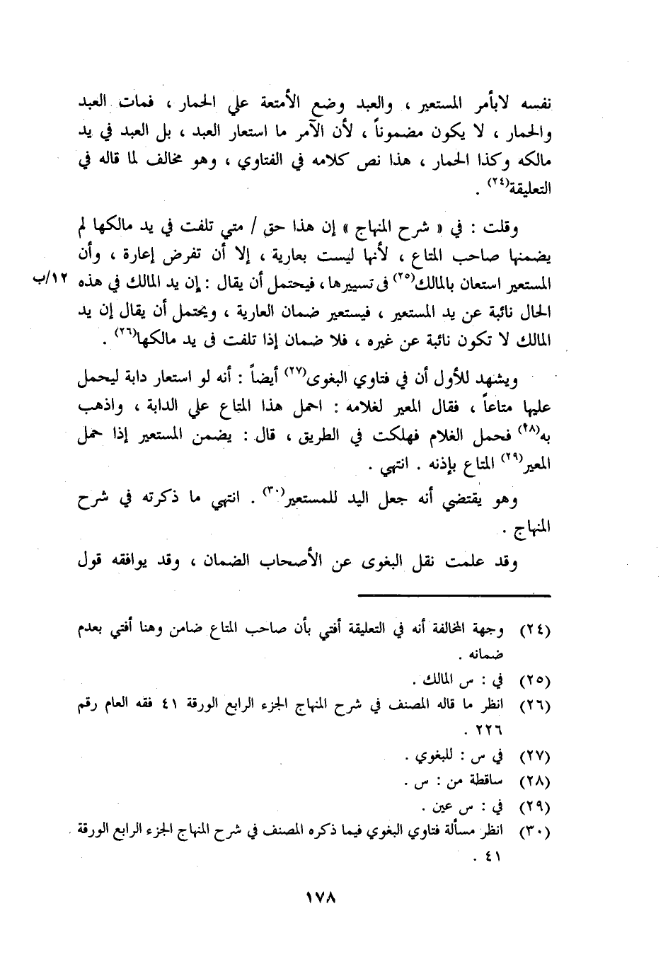 وقلت: في (شرح المنهاج) إن هذا حق / متى تلفت في يد مالكها لم يضمنها صاحب المتاع، لأنها ليست بعارية، إلا أن تفرض إعارة، وأن المستعير استعان بالمالك في تسييرها، فيحتمل أن يقال: إن المالك في هذه الحال نائبة عن المستعير، فيستعير ضمان العارية، ويحتمل أن يقال إن يد المالك لا تكون نائبة عن غيره، فلا ضمان إذا تلفت في يد مالكها.
