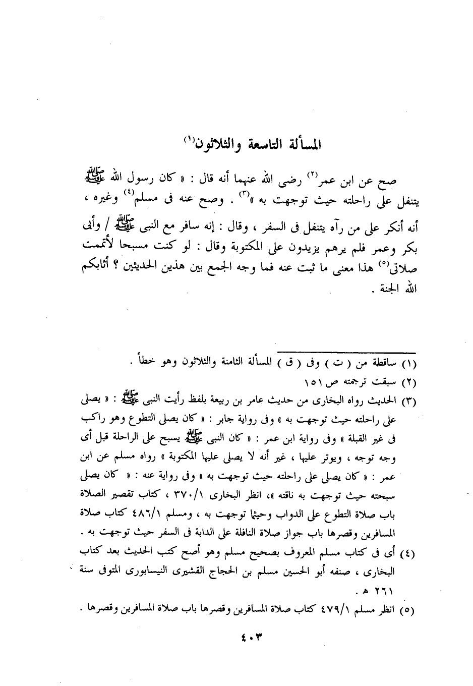 صح عن ابن عمرو رضي الله عنهما أنه قال: "كان رسول الله صلى الله عليه وسلم أنه أنكر على من رآه يتنفل في السفر، وقال: إنه سافر مع النبي صلى الله عليه وسلم/ وأبى بكر وعمر فلم يرهم يزيدون على المكتوبة وقال: لو كنت مسبحا لأتممت صلاتي هذا معنى ما ثبت عنه فما وجه الجمع بين هذين الحديثين؟ أثابكم الله الجنة.