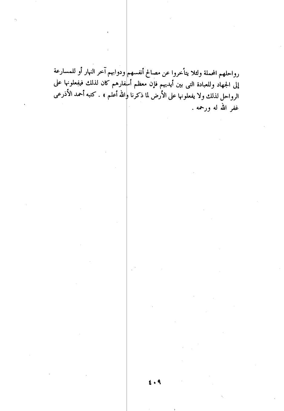 رواحلهم المحملة ولئلا يتأخروا عن مصالح أنفسهم ودوابهم آخر النهار أو للمسارعة إلى الجهاد وللعبادة التي بين أيديهم فإن معظم أسفارهم كان لذلك فيفعلونها على الرواحل لذلك ولا يفعلونها على الأرض لما ذكرنا والله أعلم". كتبه أحمد الأذرعي غفر الله له ورحمه.