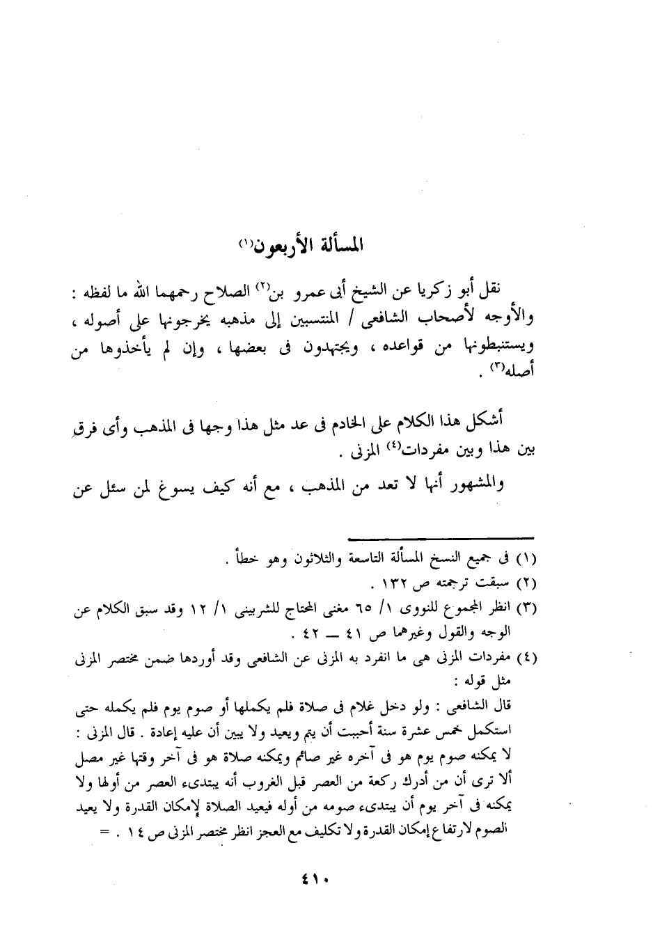 نقل أبو زكريا عن الشيخ أبي عمرو بن الصلاح رحمهما الله ما لفظه: والأوجه لأصحاب الشافعي/ المنتسبين إلى مذهبه يخرجونها على أصوله، ويستنبطونها من قواعده، ويجتهدون في بعضها، وإن لم يأخذوها من أصله.