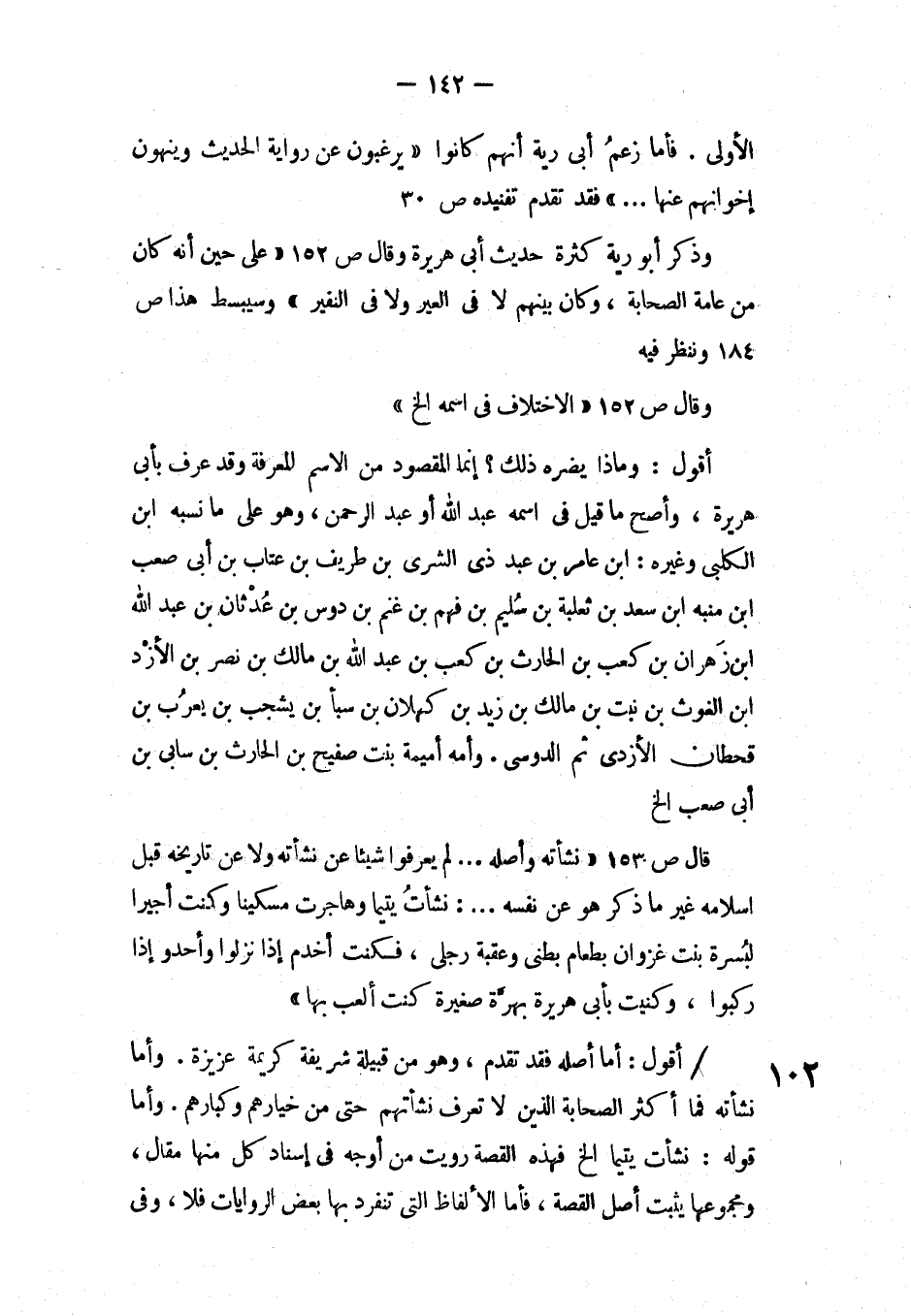 وذكر أبو رية كثيرة حديث أبي هريرة وقال ص152 «على حين أنه كان من عامة الصحابة، وكان ينبهم لا في العير ولا في النفير» وسيبسط هذا ص184 وننظر فيه