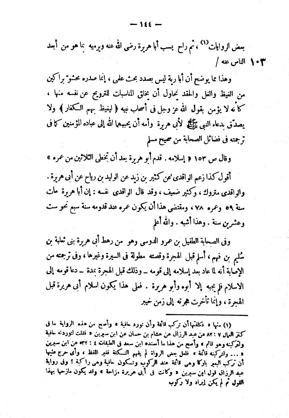 وقال ص153 «إسلامه. قدم أبو هريرة بعد أن تخطى الثلاثين من عمره»