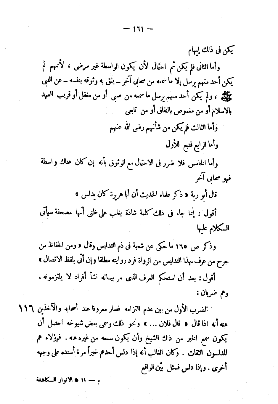 وذكر ص165 ما حكى عن شعبة في ذم التدليس وقال «ومن الحفاظ من جرح من عرف بهذا القياس من الرواة في روايته مطلقاً وإن أتى بلفظ الاتصال»