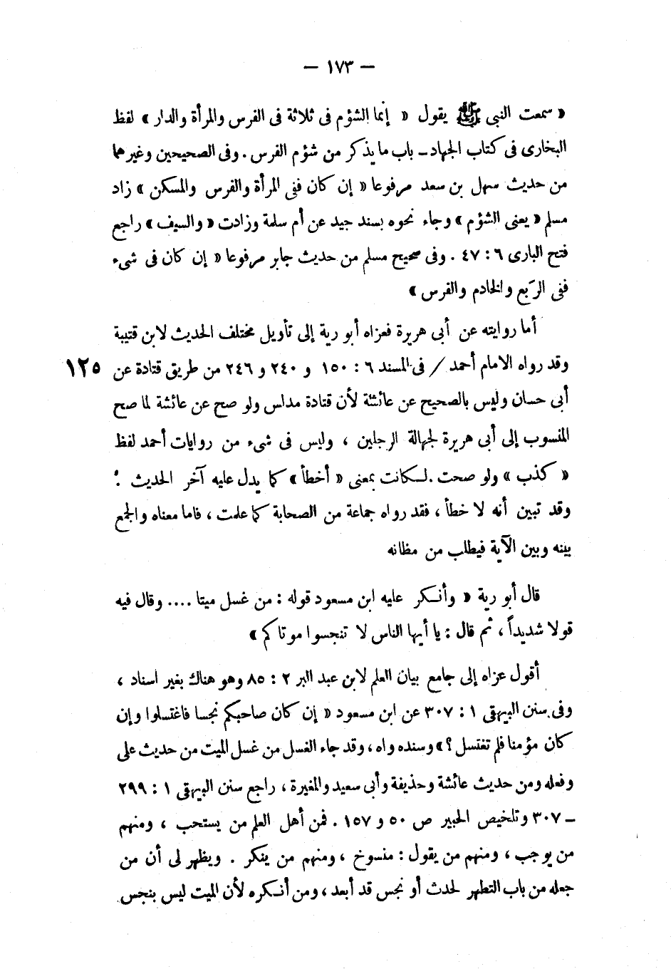 قال أبو رية «وأنكر عليه ابن مسعود قوله: من غسل ميتاً ... وقال فيه قولاً شديداً ثم قال: يا أيها الناس لا تنجسوا موتاكم»