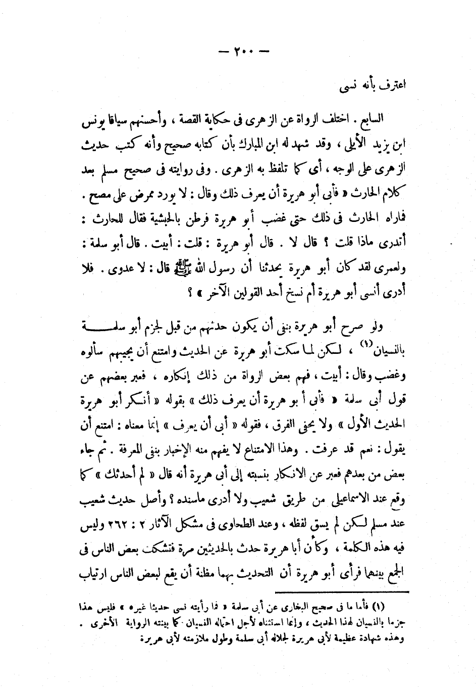 (1) فأما ما في صحيح البخاري عن أبي سلمة فما رأيته نسي حديثاً غيره فليس هذا جزماً بالنسيان لهذا الحديث، وإنما استثناه لأجل احتماله النسيان كما بينه الرواية الأخرى، وهذه شهادة عظيمة لأبي هريرة لجلاله أبي سلمة وطول ملازمته لأبي هريرة