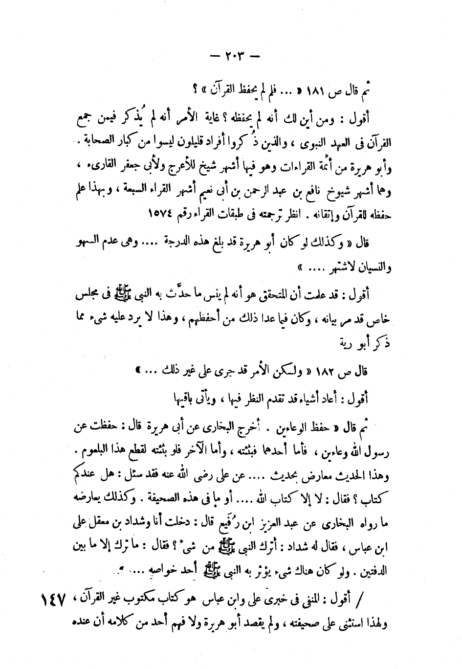 ثم قال ص 181 «.... فلم لم يحفظ القرآن»