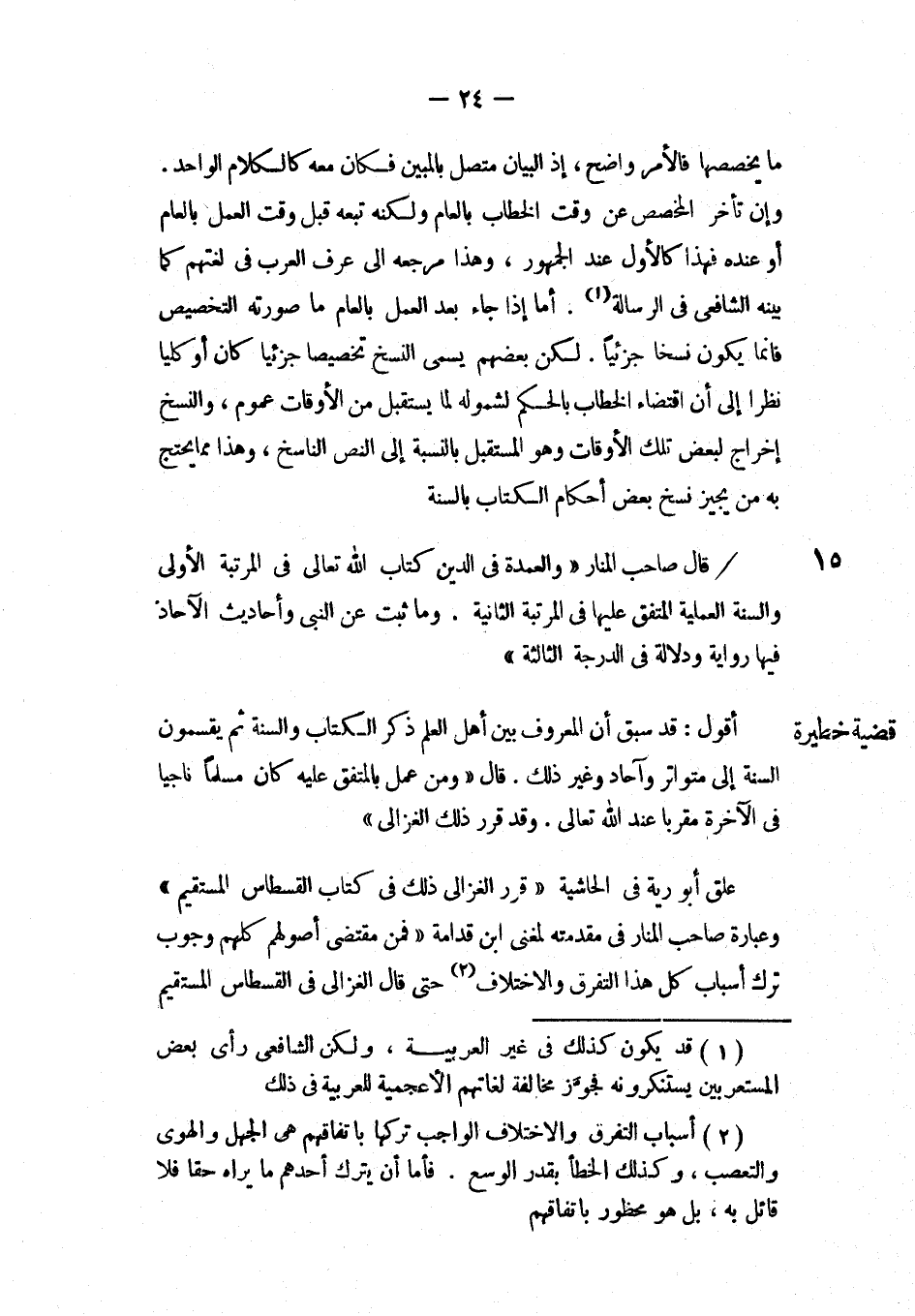 (1) قد يكون كذلك في غير العربية، ولكن الشافعي رأى بعض المستعربين يستنكرونه فجوز مخالفة لغاتهم الأعجمية للعربية في ذلك