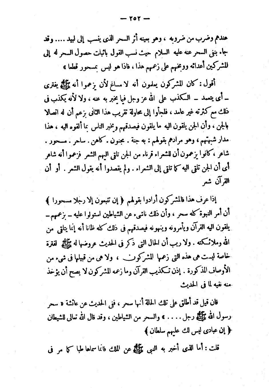 عندهم وضرب من ضروبه، وهو بعينه أثر الحس رالذي نسب إلى لبيد ... وقد جاء بنفي السحر عليه السام حيث نسلب القول بإثبات حصول السحر له إلى المشركين أعداءه ووبخهم على زعمهم هذا، فإذا هو ليس بمحسور قطعاً»
