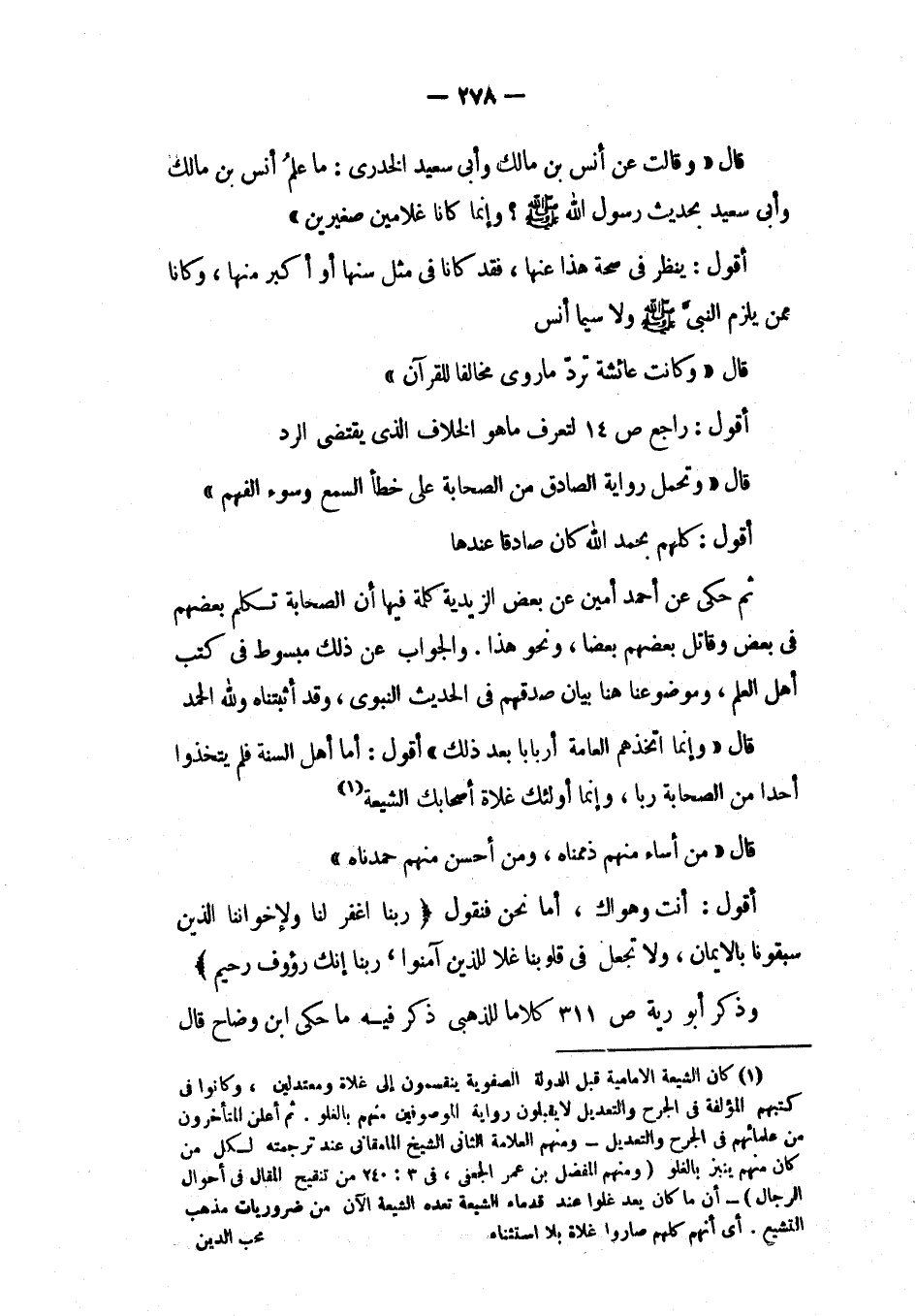 قال «وتحمل رواية الصادق من الصحابة على خطأ السمع وسوء الفهم»