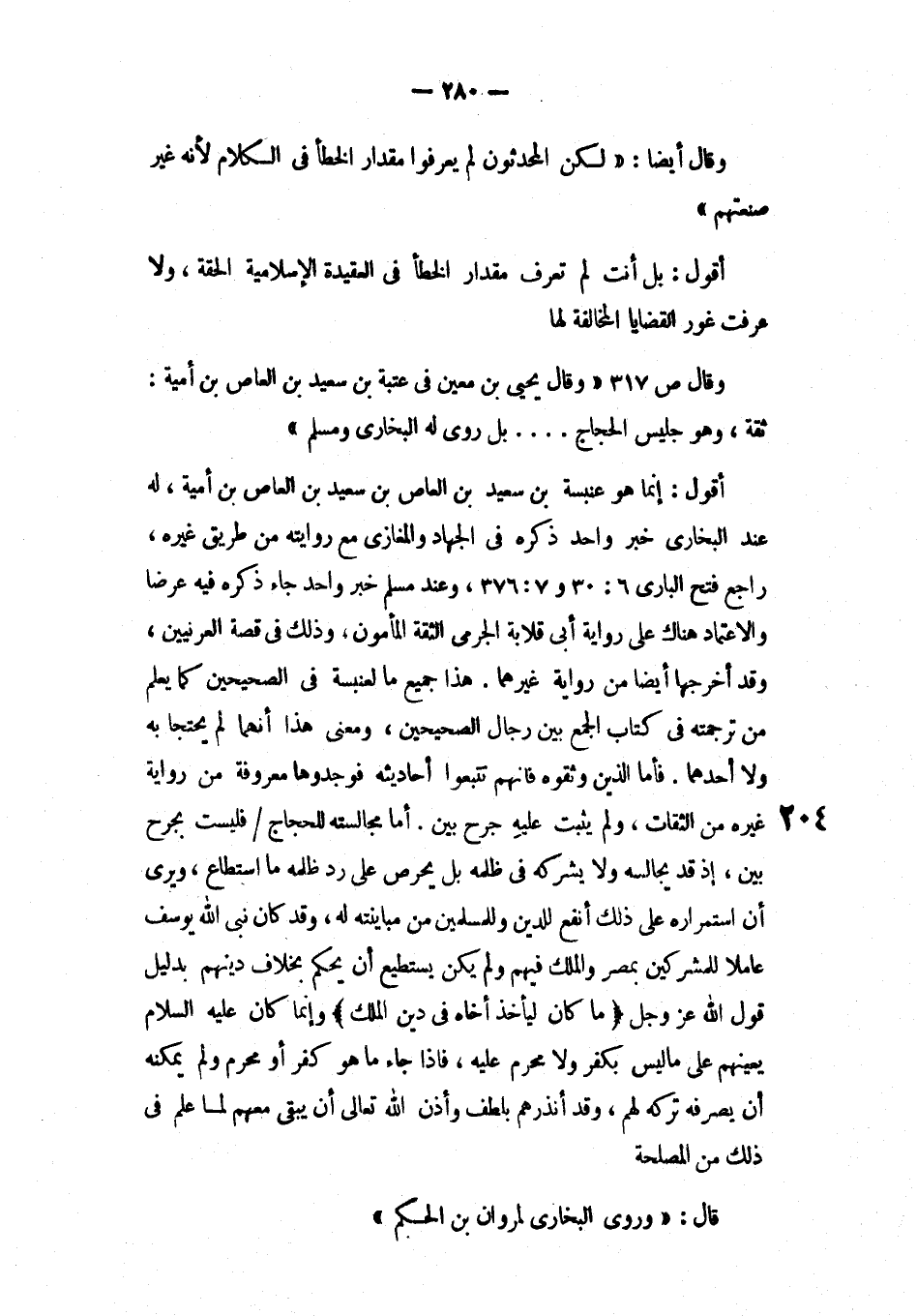وقال ص317 «وقال يحيى بن معين في عتبة بن سعيد بن العاص بن أمية: ثقة، وهوجليس الحجاج.... بل روى له البخاري ومسلم»
