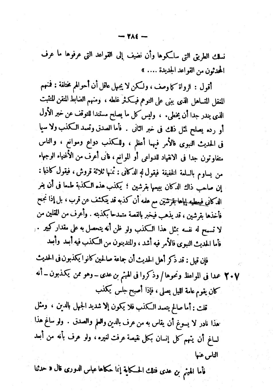فإن قيل: قد ذكر أهل الحديث أن جماعة صالحين كانوا يكذبون في الحديث عمداً في المواعظ ونحوها / وذكروا في الهيثم بن عدي – وهو ممن يكذبون – أنه كان يقوم عامة الليل يصلي، فإذا أصبح جلس يكذب