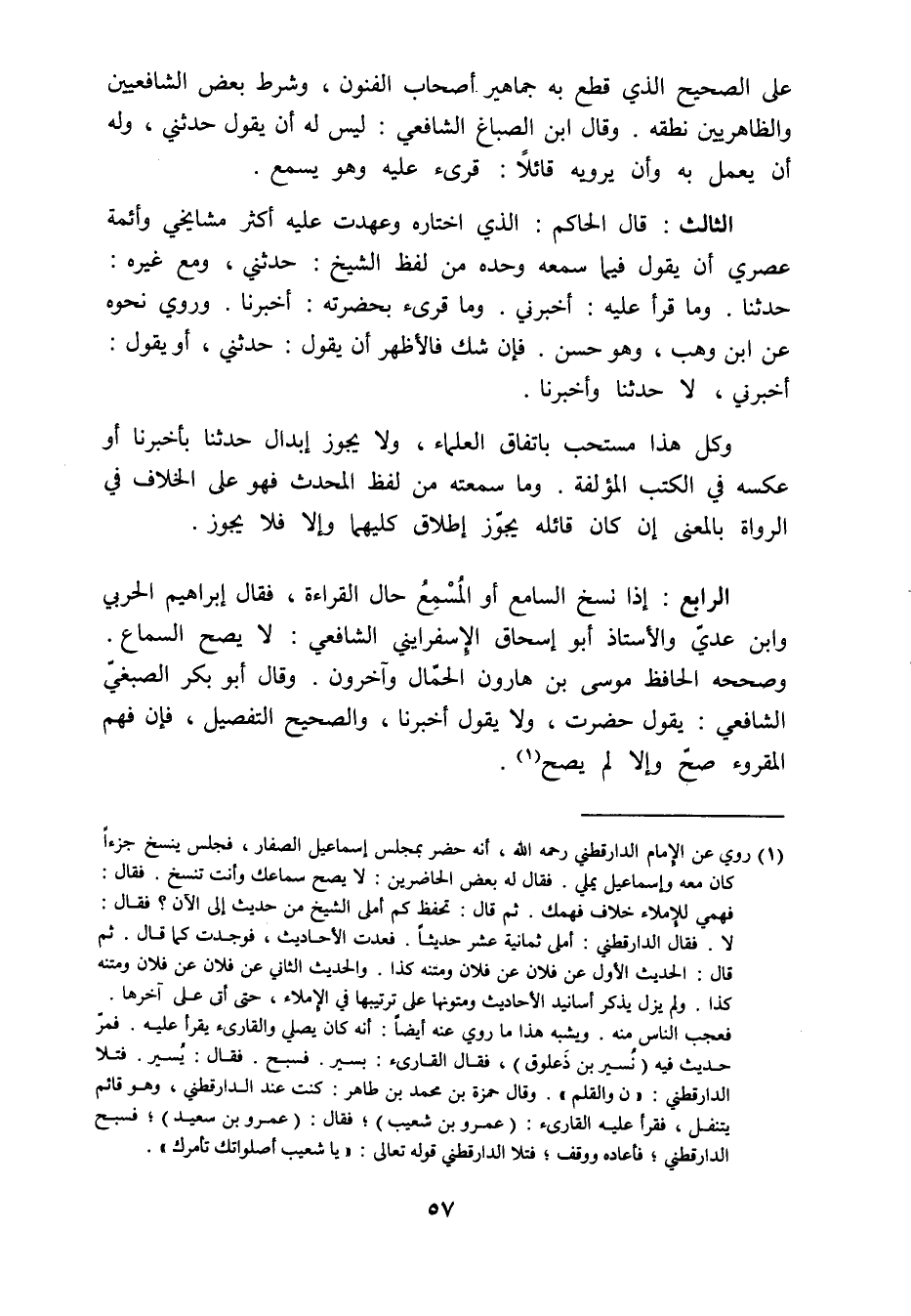 الرابع: إذا نسخ السامع أو المسمع حال القراءة. قال إبراهيم الحربي وابن عدي والأستاذ أبو إسحاق الاسفرايني الشافعي: لا يصح السماع. وصححه الحافظ موسى بن هارون الجمال وآخرون وقال أبو بكر الضبعي الشافعي: يقول حضرت ولا يقول أخبرنا، والصحيح التفصيل، فإن فهم المقروء صح وإلا لم يصح