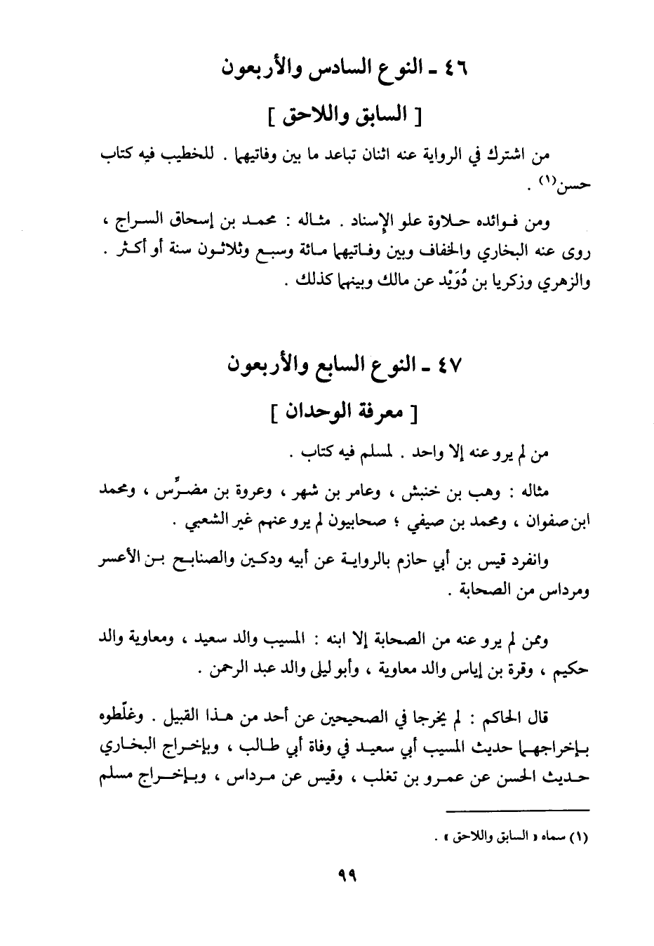 للخطيب فيه كتاب حسن، ومن فوائده حلاوة علو الاسناد: مثاله محمد بن إسحاق السراج، روي عنه البخاري والخفاف وبين وفاتيهما مائة وسبع وثلاثون سنة أو أكثر، والزهري وزكريا بن رويد عن مالك وبينهما كذلك، والله أعلم.
